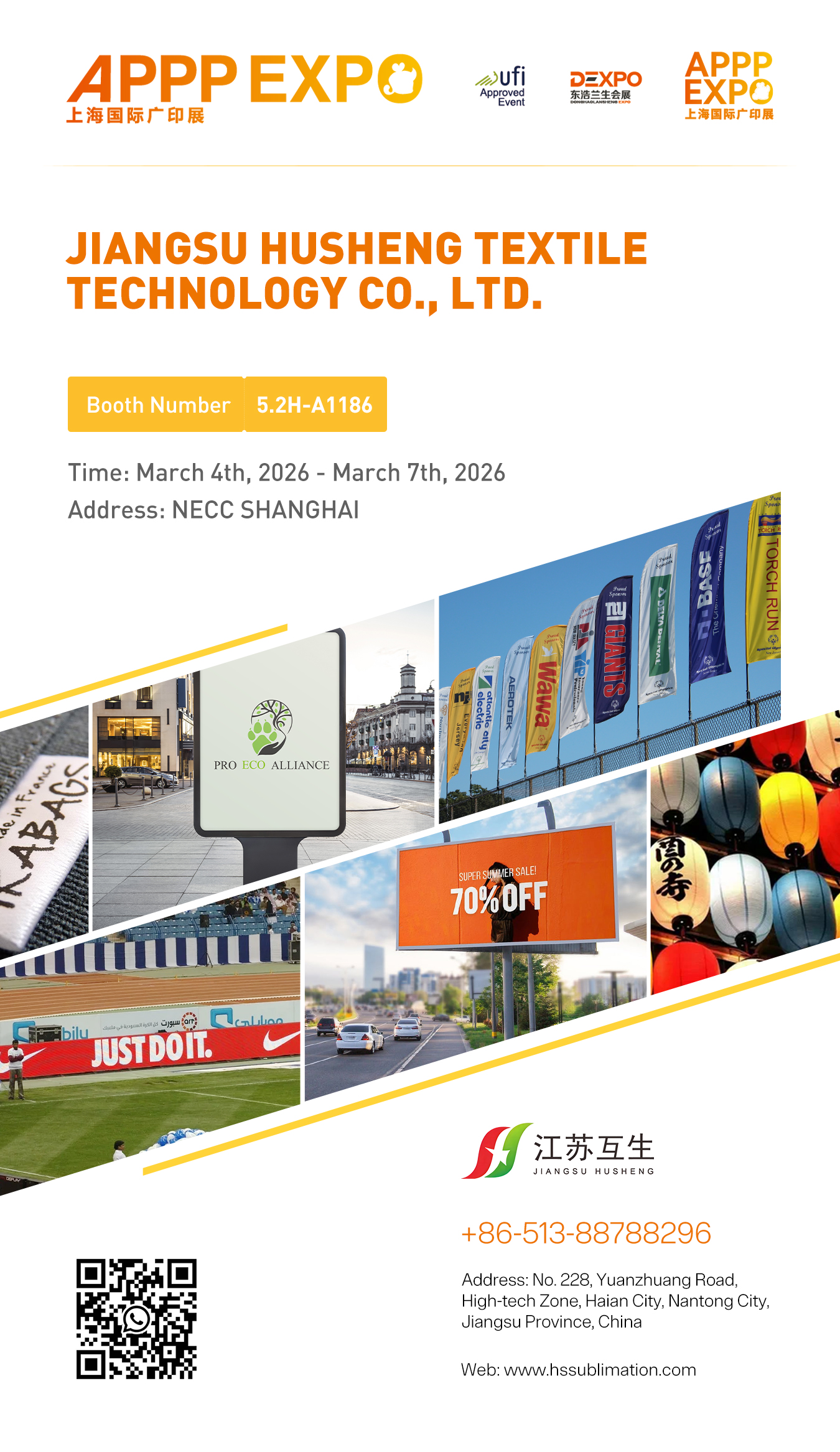 Jiangsu Husheng Textile Technology Co., Ltd. will participate in APPP EXPO 2026, which will be held from March 4 to March 7, 2026, at the National Exhibition and Convention Center (Shanghai).